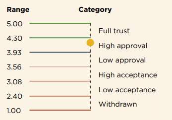 The survey returned an enhanced acceptance of our activities and overall Social Licence to Operate score of 4.19 out of 5 (up from 4.00 in FY22), retaining Evolution’s ‘High Approval’ scoring. This range is optimal as it reflects that stakeholders support Evolution, however, will also take opportunities to provide feedback and criticism as considered healthy for building trusted partnerships. The direction of Evolution’s ‘Relationship’ in 2024 was predominantly positive, with 41% of Core stakeholders interviewed saying our relationship is improving. Our ‘Reputation’ score, however, saw a decrease to 3.80 in 2024 (4.04 in FY22).
